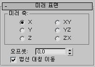 미러 축 버튼은 원래 표면이 미러링되는 방향을 컨트롤합니다.