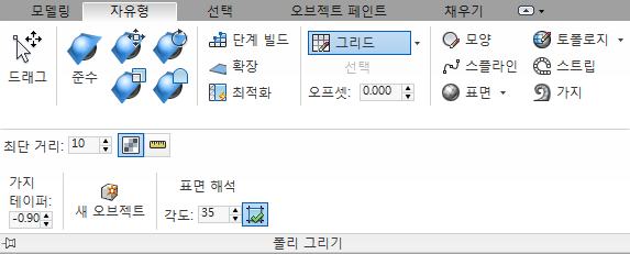 확장이 있는 최대화된 리본의 폴리 그리기 패널