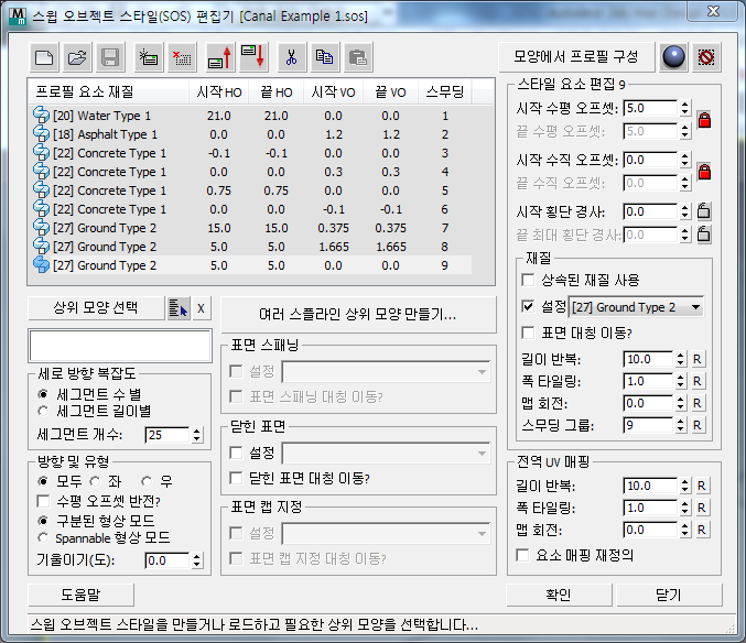 이 선택 항목은 벽 및 노이즈 방어벽 프로필을 만드는 데 유용하며, 여기서 스플라인 사이의 잠재적인 간격은 벽이나 방어벽의 간격을 나타냅니다.