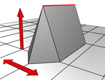 뷰포트에서 정점이나 가장자리를 대화식으로 돌출시킬 때 마우스를 수직 이동하여 돌출 높이를, 수평 이동하여 바닥 폭을 설정합니다.