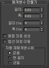 CV 표면 하위 오브젝트를 만들 때 나타나는 매개변수는 하위 오브젝트로 수정할 때 표시되는 매개변수와 다릅니다.