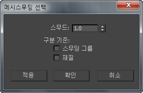 메시스무딩 선택은 캐디 컨트롤 사용이 설정되면 캐디 인터페이스를 사용하고 해제되면 표준 설정 대화상자를 사용합니다. 캐디 컨트롤 사용에 대한 자세한 내용은 캐디 인터페이스를 참조하십시오.