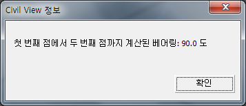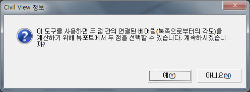 베어링 측정을 선택하는 경우 측정할 점을 선택하라는 메시지가 Civil View에 표시됩니다.