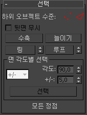 주: 이 롤아웃의 컨트롤은 편집 가능한 폴리 오브젝트의 선택 롤아웃에 있는 컨트롤과 유사합니다. 이 섹션에서는 그러한 컨트롤에 대한 최소한의 설명만 제공하기 때문에 자세한 내용은