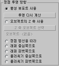 다음 7개 옵션 중 하나를 선택하여 정점 투영을 결정합니다.
