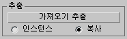 만약 복사(기본값)로 설정되어 있다면 추출된 오브젝트는 가져온 오브젝트의 최상위 수준 복사본입니다. 만약 인스턴스로 설정되어 있다면 추출된 오브젝트는 가져온 오브젝트의 인스턴스입니다. 처음에는 추출된 오브젝트가 가져온 오브젝트와 동일한 공간을 차지합니다. 추출된 오브젝트, 가져오기 하위 오브젝트 또는 전체 NURBS 모델을 이동해야 추출된 오브젝트를 볼 수 있습니다.