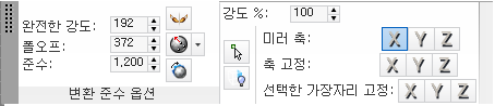 도구가 미러링되는 축을 선택합니다(이전 미러 참조). 이 설정은 표준 좌표계를 사용합니다.