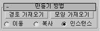 만들기 방법 롤아웃에서 로프트 오브젝트를 만드는 데 모양이나 경로를 사용할지 및 결과 로프트 오브젝트에 대해 수행할 작업 유형을 결정합니다.