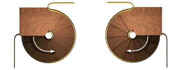 오른쪽: CW(시계 방향) 왼쪽 나선형 계단입니다. 화살표는 “위”를 표시합니다.