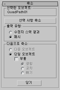 축소 유틸리티를 사용하면 하나 이상 선택된 오브젝트의 스택 작업을 편집 가능한 메시 또는 스택 결과로 결합하고 선택적으로 오브젝트에서 부울 연산을 동시에 수행할 수 있습니다.