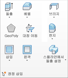 주: 다각형 돌출 대화상자를 열려면 드롭다운 메뉴에서 돌출 설정을 선택하거나 Shift 키를 누른 채 돌출 버튼을 클릭합니다.