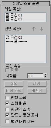 이 콘트롤은 일반적으로 스윕 표면 특성과는 대조적으로 단면 곡선 리스트에서 선택하는 각각의 커브에 영향을 줍니다. 단면 곡선 리스트에서 곡선을 선택한 경우에만 사용이 가능합니다.