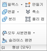 리본의 슬라이스 평면을 사용하면 슬라이스 모드 컨텍스트 패널에서 슬라이스, 분할 및 평면 재설정 컨트롤을 사용할 수 있습니다.