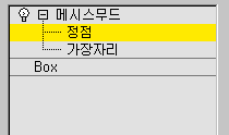 가장자리 또는 정점 수준을 설정하거나 끕니다. 두 수준이 모두 꺼져 있으면 오브젝트 수준에서 작업하는 것입니다. 선택한 가장자리 또는 정점에 대한 정보는 뒷면 무시 확인란 아래의 메시지 영역에 표시됩니다.