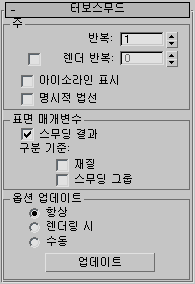 현재 터보스무드 설정과 일치하도록 뷰포트의 오브젝트를 업데이트합니다. 렌더링 시 또는 수동을 선택한 경우에만 작동합니다.
