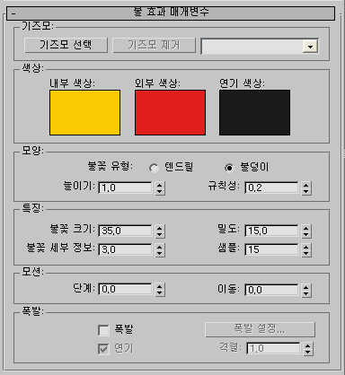 각 효과에는 자체 매개변수가 있습니다. 효과 리스트에서 불 효과를 선택하면 해당 매개변수가 환경 대화상자에 나타납니다.