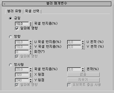 최대픽셀에 블러 효과를 적용하기 위해 픽셀이 가질 수 있는 최대값(RGB, 알파 또는 발광)입니다.