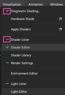 이제 Short Menus를 사용하여 진단 쉐이더가 Diagnostic Shaders 창에 표시되지 않도록 숨길 수 있습니다. Hotkey Menu Editor를 열고 숨기려는 진단 쉐이더에 대한 Short Menu 아이콘을 클릭합니다.