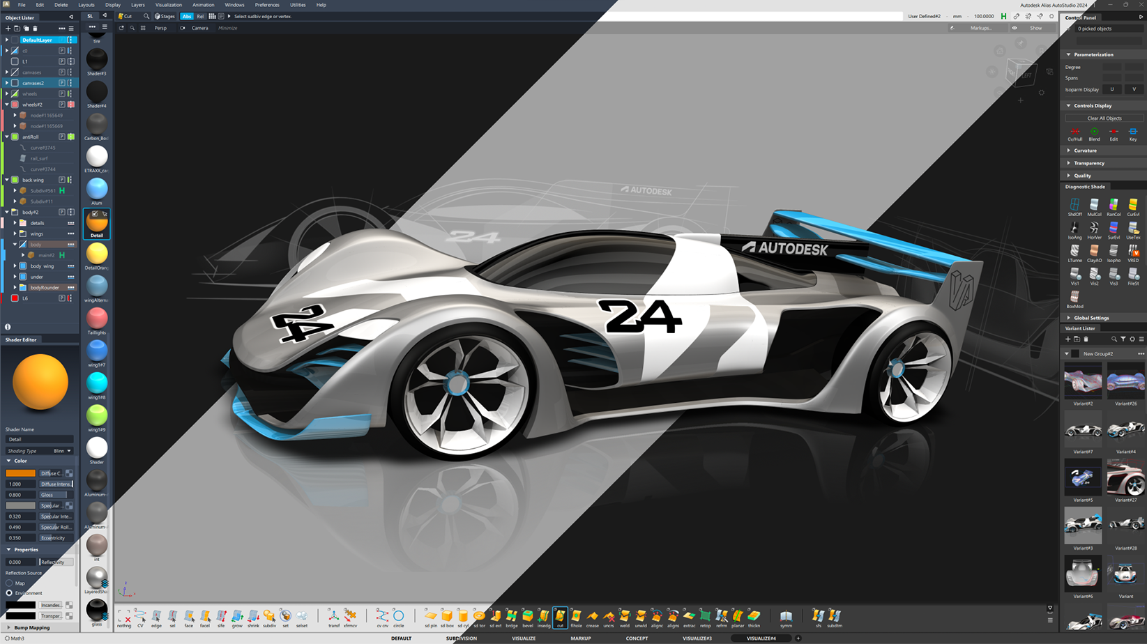 Alias의 디자인과 느낌이 새로워졌습니다. 더 효율적인 워크플로우와 유연한 사용자화를 위해 사용자 경험이 개선되었습니다. 수정된 사항을 비롯한 자세한 기술 정보는 Alias 릴리즈 정보를 참조하세요.