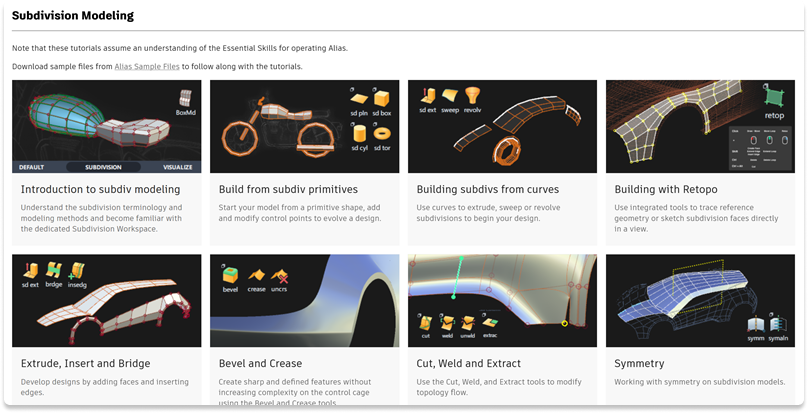 Alias에서 서브디비전 모델링을 시작할 수 있도록 도움말에 새로운 서브디비전 모델링 동영상 튜토리얼 시리즈가 추가되었습니다.
