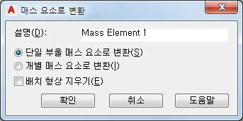 - 또는 선택된 객체를 별도의 매스 요소로 변환하려면 개별 매스 요소로 변환을 선택합니다.