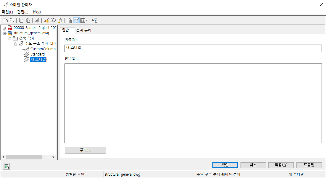 - 확인을 클릭하여 주요 구조 부재 쉐이프 정의 리스트에 새 쉐이프를 추가하고 스타일 관리자를 닫습니다.