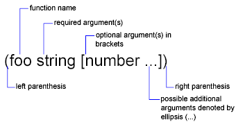 Reference topics in the documentation use a consistent convention to describe the proper syntax for an AutoLISP function.