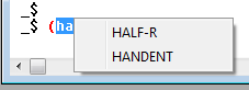 Entering (ha and pressing Ctrl+Shift+Spacebar displays a list of matching variables or functions.
