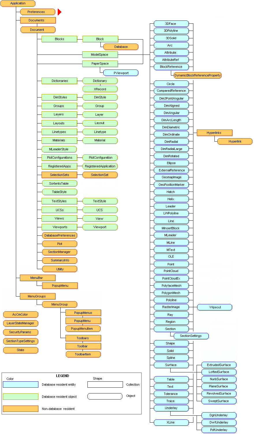 AutoCAD objects are structured in a hierarchical fashion, with the Application object at the root.