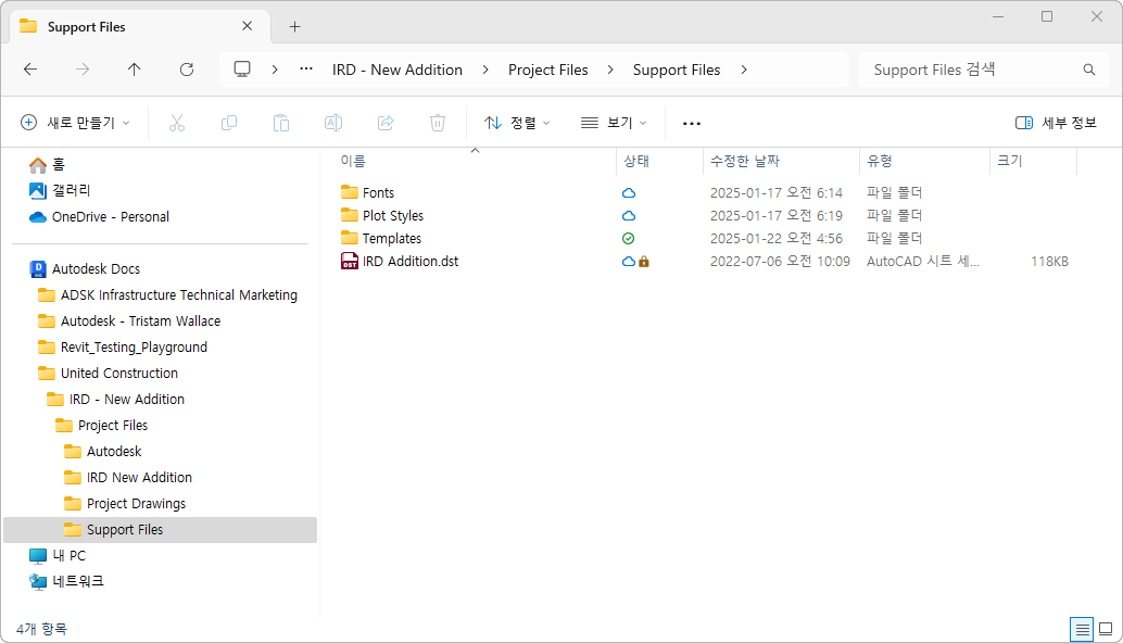 로컬 폴더에 추가된 지원 파일은 Desktop Connector를 통해 Autodesk Docs에 동기화됩니다.