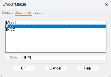 대상 배치 지정 또는 [?] <모형>: 기존 배치 이름을 지정하거나 새 이름을 입력하여 새 배치를 작성합니다.