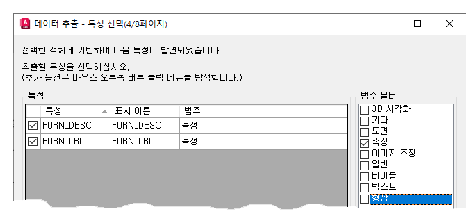 주: 새 데이터 추출 파일을 작성할 때 AutoCAD 2024 이하 버전에서는 파일 확장자가 .dxe이고, AutoCAD 2025부터는 파일 확장자가 .dxex입니다.