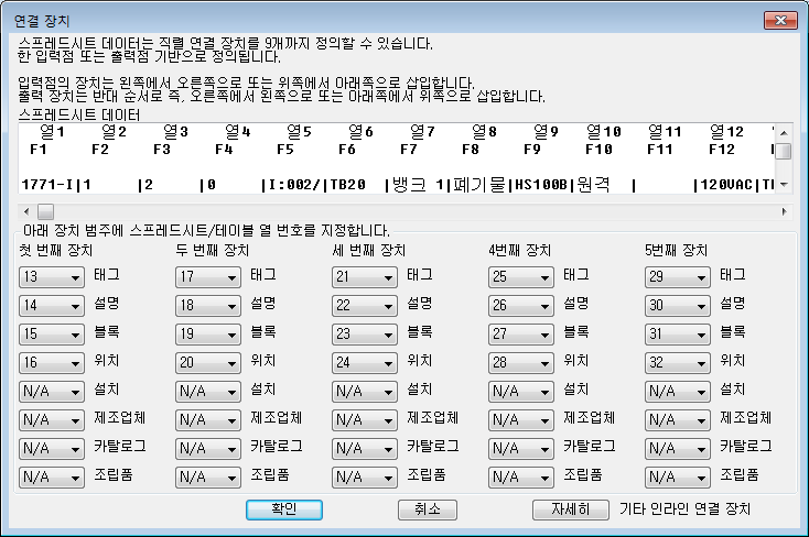 스프레드시트나 데이터베이스 형식에서 프로젝트의 PLC 입출력 요구사항은 입출력 구조도 도면을 자동으로 생성할 수 있습니다.