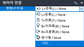 라이브러리 기호의 와이어 연결 지점 및 터미널 문자를 정의할 수 있습니다. 와이어 연결을 추가할 경우 스타일, 와이어 연결 시작 방향, 선택적 TERMxx 및 TERMDESCxx 속성을 포함할지 여부를 선택합니다. 이 연습에서는 와이어 연결 속성을 기호의 왼쪽, 아래쪽 및 오른쪽에 삽입합니다.