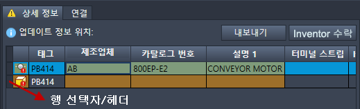 • 행 선택자(헤더)를 클릭하여 AutoCAD Electrical 도구 세트 구성요소의 전체 행을 선택합니다.