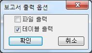 주: 형식 파일에 파일 또는 테이블 출력 설정이 없으면 관련 옵션을 사용할 수 없게 됩니다.