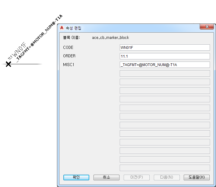 두 번째 호출인 c:ace_cb_save는 모터의 TAG1 속성 값을 메모리의 “@MOTOR_NUM@”의 색인 태그 아래에 저장합니다. 다음 와이어 번호 표식기 블록이 처리될 때 이 값을 참조할 수 있습니다.