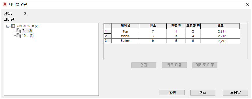터미널 연관 대화상자에서 터미널 10, , (3)을 선택하고 연관을 클릭합니다.