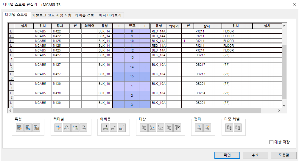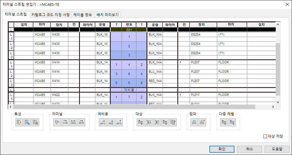 터미널 스트립 편집기를 사용하여 터미널을 관리하고, 터미널 특성을 편집하고, 터미널을 연관시키고, 그래픽 터미널 스트립을 삽입합니다.