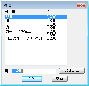- 각 열의 폭 값을 정의하는 대화상자를 엽니다.