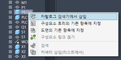을 마우스 오른쪽 버튼으로 클릭하고 카탈로그 검색기에서 삽입
