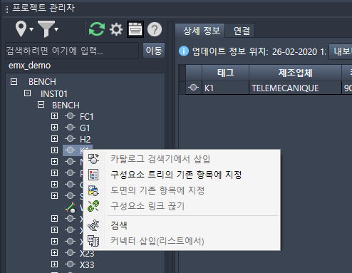구성요소 트리 뷰 또는 상세 정보 및 연결 창의 구성요소 표현에서 도면의 기호로 이동합니다.