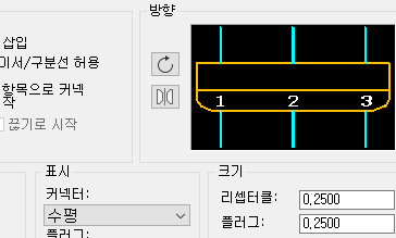 - 커넥터 화면표시 메뉴에서 수평을 클릭합니다.