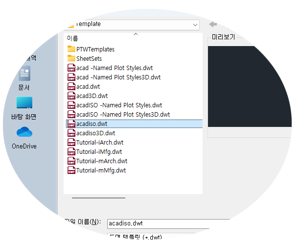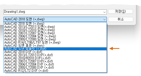 어떤 도면(.dwg) 파일이든 도면 템플릿(.dwt) 파일로 저장할 수 있습니다. 기존 템플릿을 기준으로 도면 템플릿 파일을 작성하려면 기존 도면 템플릿 파일을 열고 수정한 다음, 다른 파일 이름으로 다시 저장합니다.