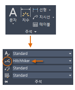 현재 치수 스타일 이름(이 예의 경우 Hitchhiker)이 주석 패널의 드롭다운 리스트에 표시됩니다.
