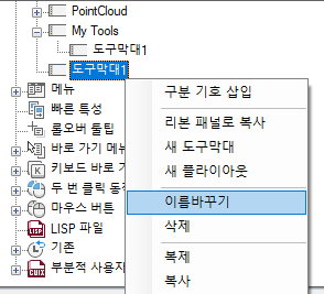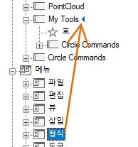 도구막대에 새 플라이아웃이 작성되고 사용된 풀다운 메뉴를 기준으로 새 도구막대도 작성됩니다.