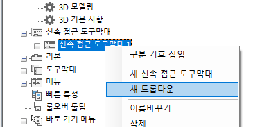 신속 접근 도구막대의 맨 아래에 새 드롭다운(이름: New Drop-down)이 추가됩니다.