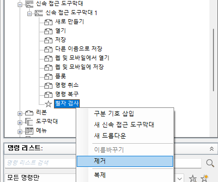 - 제거할 명령 또는 컨트롤을 마우스 오른쪽 버튼으로 클릭하고 제거를 클릭합니다.
