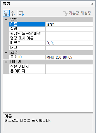 - 설명 상자에 명령에 대한 설명을 입력합니다. 이 값은 상태막대나 툴팁에 표시됩니다.