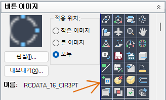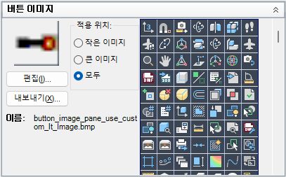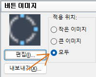 버튼 이미지 창의 적용 위치 아래에서 작은 이미지, 큰 이미지 또는 모두 중 원하는 이미지 지정 옵션을 선택합니다.